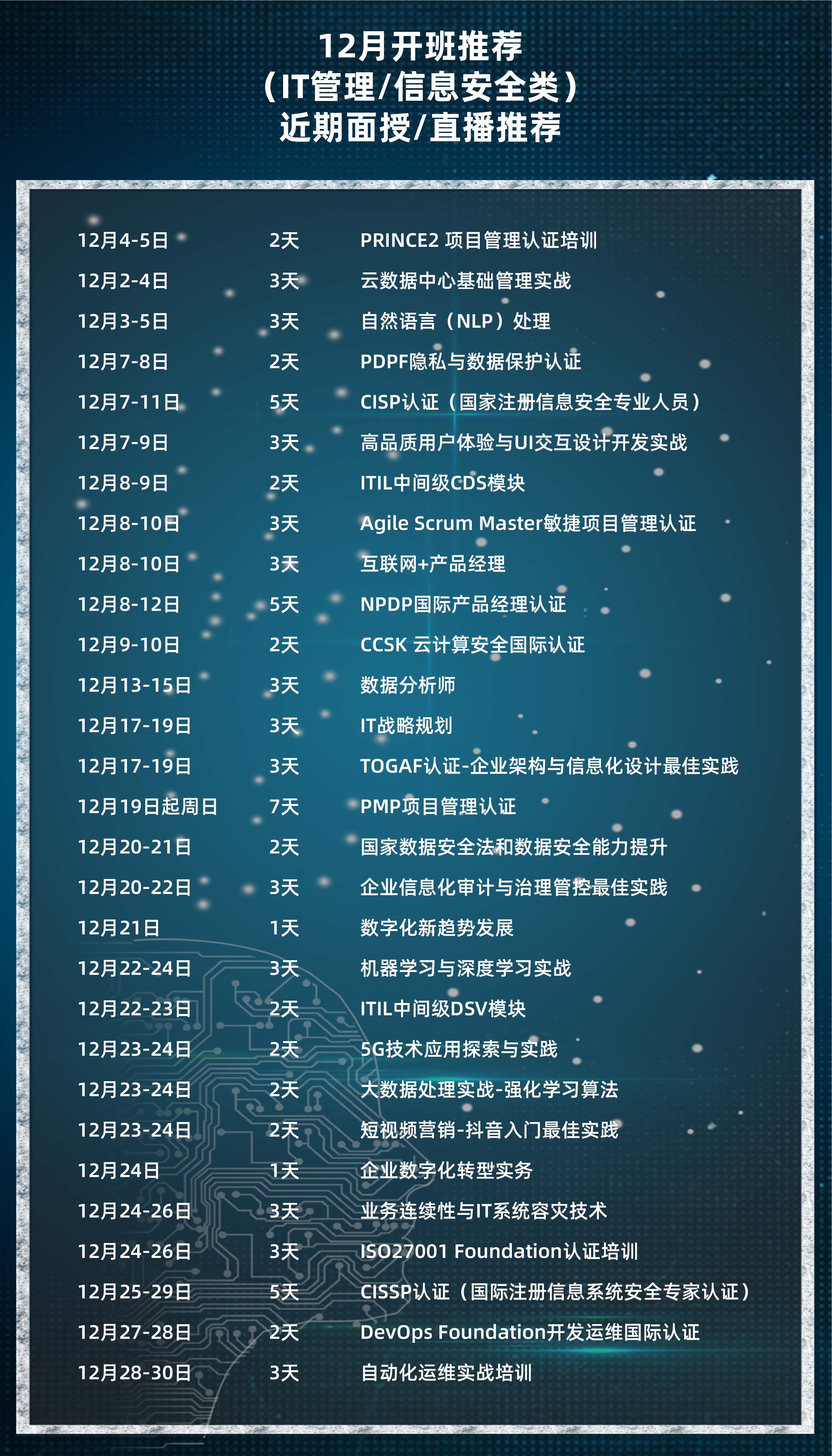 2021年12月开班推荐(IT管理 / 信息安全类)(上)