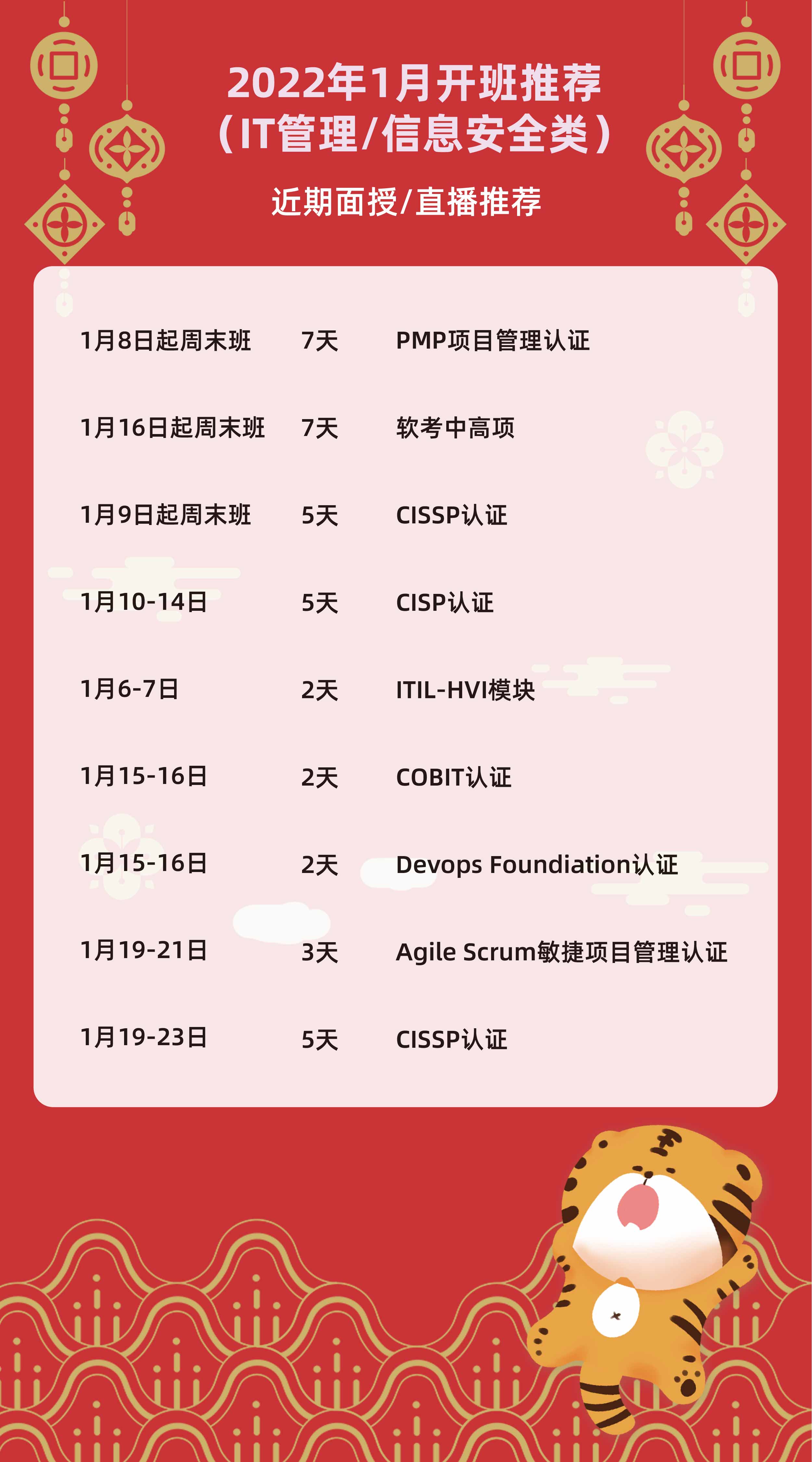 2022年1月开班推荐(IT管理 / 信息安全类)
