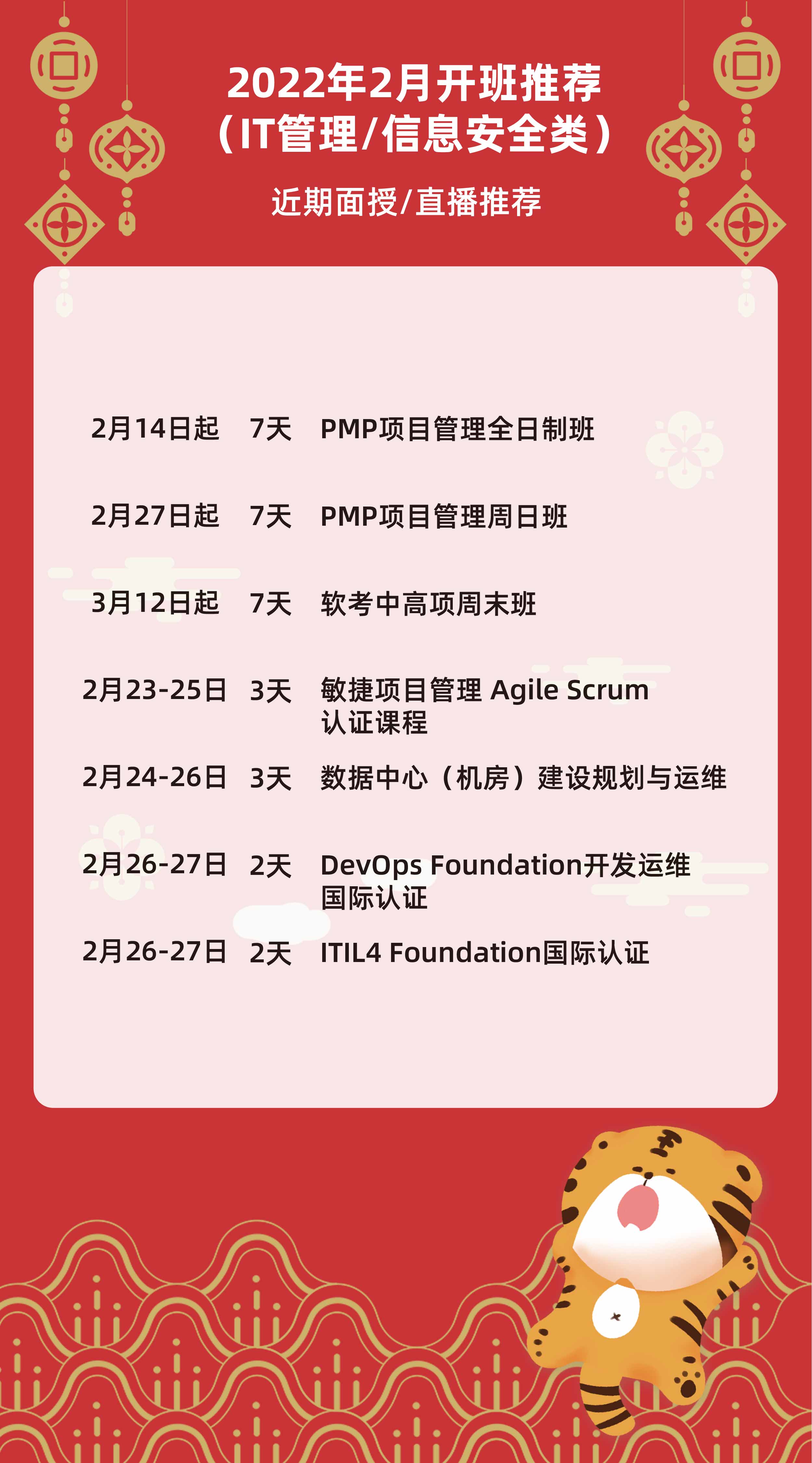 2022年2月开班推荐(IT管理 / 信息安全类)(一)