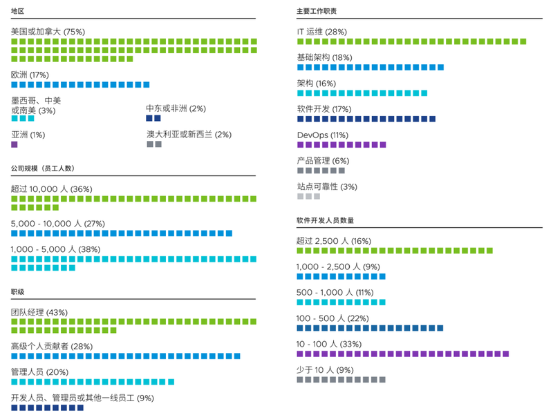 今年的研究对象在三种规模的公司中实现了更均匀的分布,员工人数在 5,000 到 10,000 之间的公司数量大幅增加,此类规模的公司在今年的样本中占 27%,去年只占了 15%。员工人数在 1,000 到 5,000 之间的公司数量从去年的 46% 下降到 38%,而员工人数超过 10,000 的公司在今年的样本中占 36%,去年占 39%。