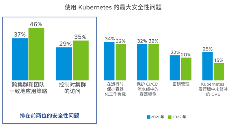 虽然到目前为止,本报告没有深入讨论安全性,但与其他数据中心和云环境运维一样,安全性也已成为 Kubernetes 的主要问题;97% 的企业对 Kubernetes 安全性存有顾虑符合安全性与合规性要求是部署 Kubernetes (59% 的受访者)和管理 Kubernetes(47%) 的最大挑战。