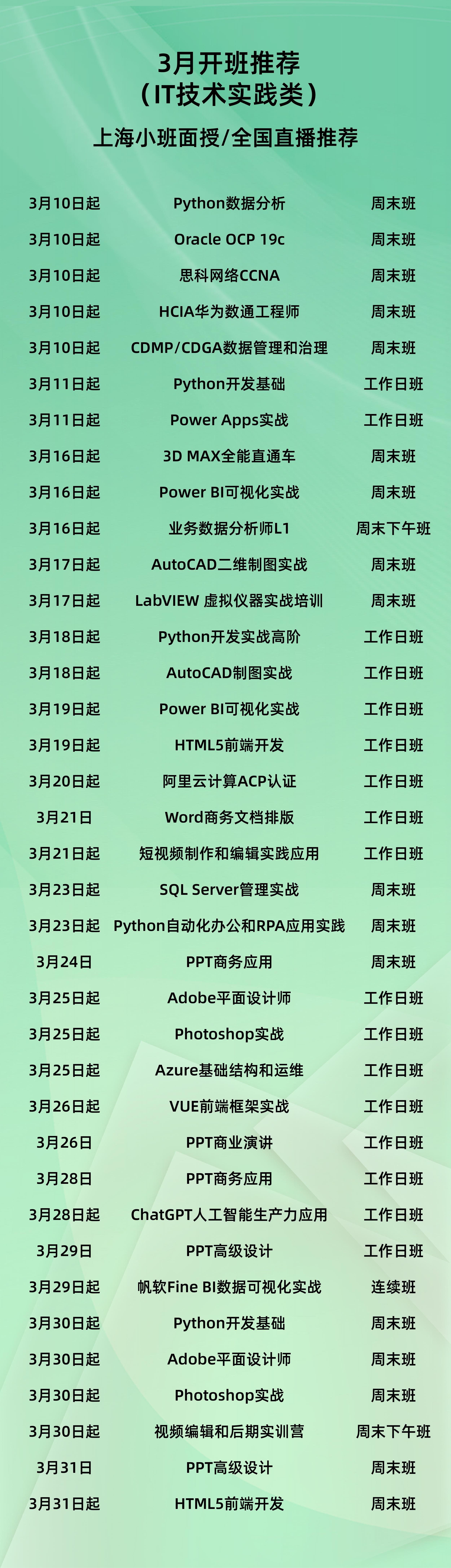 2024年3月开班推荐(IT技术实践类)