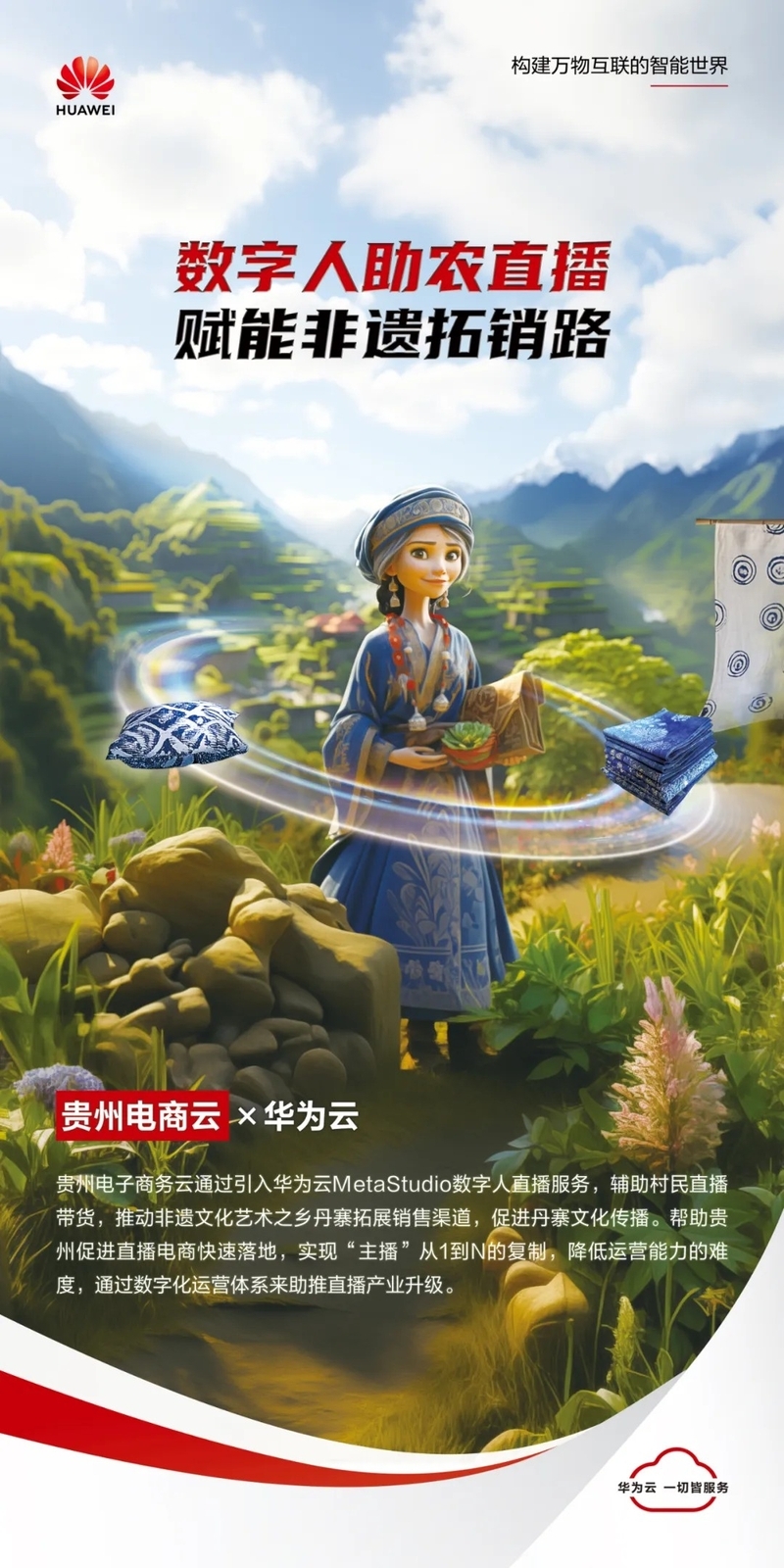 在电商领域,贵州电子商务云与华为云的合作,如同一位农夫,耕耘着数字人新技术的沃土。通过“数商兴农”的方式,为村里的蜡染产品打开了新的销售渠道,助力当地产业的发展。